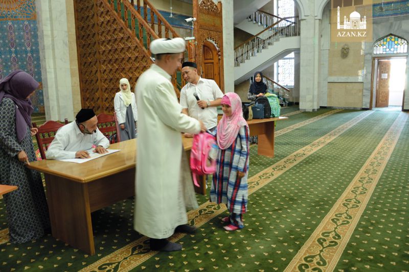 Мероприятие открыл главный имам Центральной мечети Нурбек Есмаганбет, поздравив присутствующих с началом учебного года и пожелав успеха на пути к знаниям. После этого организаторы подарили каждому ребенку школьный рюкзак со всеми необходимыми для учебы принадлежностями.