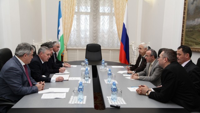 В Доме Правительства КБР состоялась встреча заместителя председателя правительства КБР Мухамеда Кодзокова с заместителем министра по делам религии Турецкой Республики Селами Эменом, муфтием г.Дюзджа Ибрагимом Хилми и советником по вопросам религии посла Турецкой Республики в РФ Саглыком Фахри.
