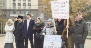 В Махачкале проходит митинг против похищения мирных граждан неизвестными вооружёнными лицами, политики РФ по отношению к мусульманам, запрета носить хиджабы и отказа в строительстве мечетей. Это первое крупное выступление после назначения главой республики Рамазана Абдулатипова.