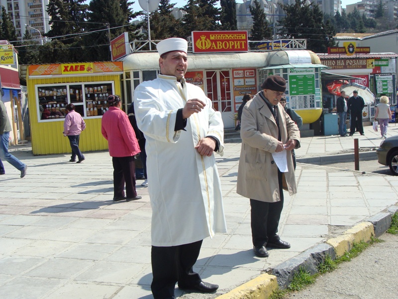 Митинг против осквернения кладбища начался с молитвы и обращения представителя Духовного управления мусульман Крыма Ризы Ганиева.