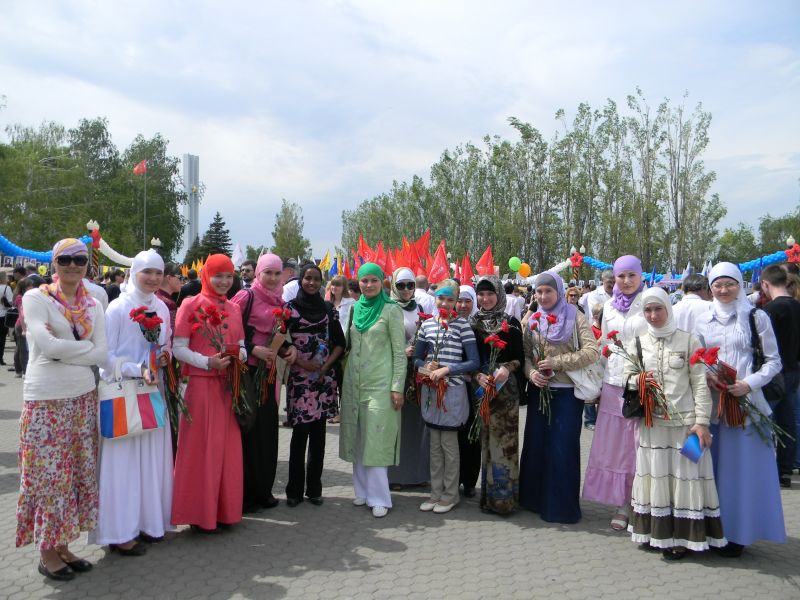 Со всех сторон пестрели флаги региональных отделений российских партий. Однако особое внимание привлекли вовсе не они, а девушки в хиджабах: саратовские мусульманки также поучаствовали в праздничном мероприятии.
