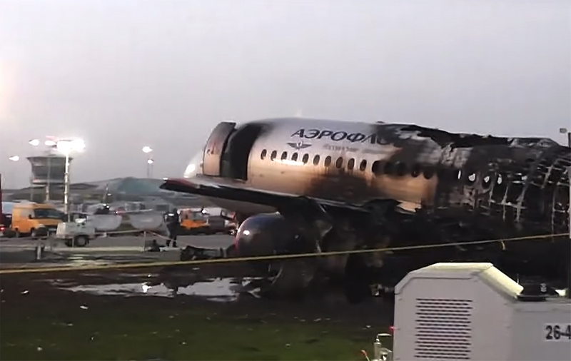 На кадрах, снятых одним из пассажиров, видно, как огонь охватил крыло самолета. Слышно, как в салоне начинается паника, однако отдельные голоса призывают успокоиться и идти к аварийному выходу.