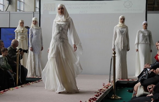 Посетителей приглашают на показ модной свадебной исламской одежды.