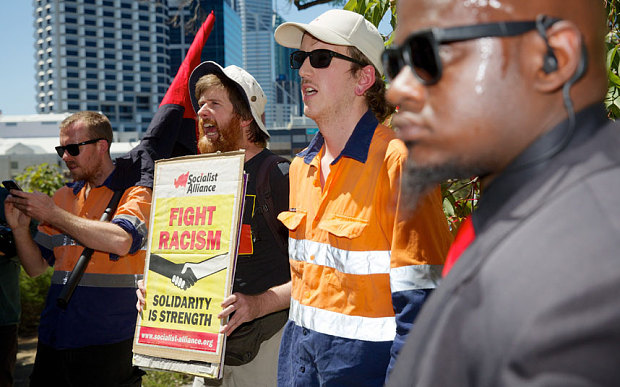 «Скажем громко, скажем четко, расистам тут не рады», - скандировали протестующие через громкоговорители, сообщает The Telegraph.