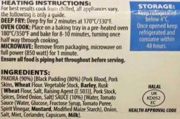 Продукт под названием «Пенджабский черный пудинг Пакора», в составе которого указана свиная кожа и кровь, продавался в супермаркетах Aldi с маркировкой халяль.