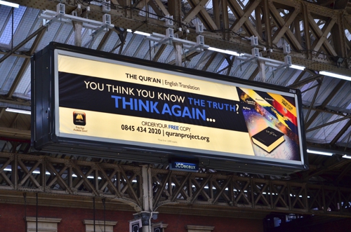 В Великобритании мусульманская организация Quran Project запланировала разместить рекламные щиты на тему Ислама и Корана на пяти крупнейших железнодорожных станциях Лондона в период 10-24 декабря, однако их планы столкнулись с неожиданным препятствием.