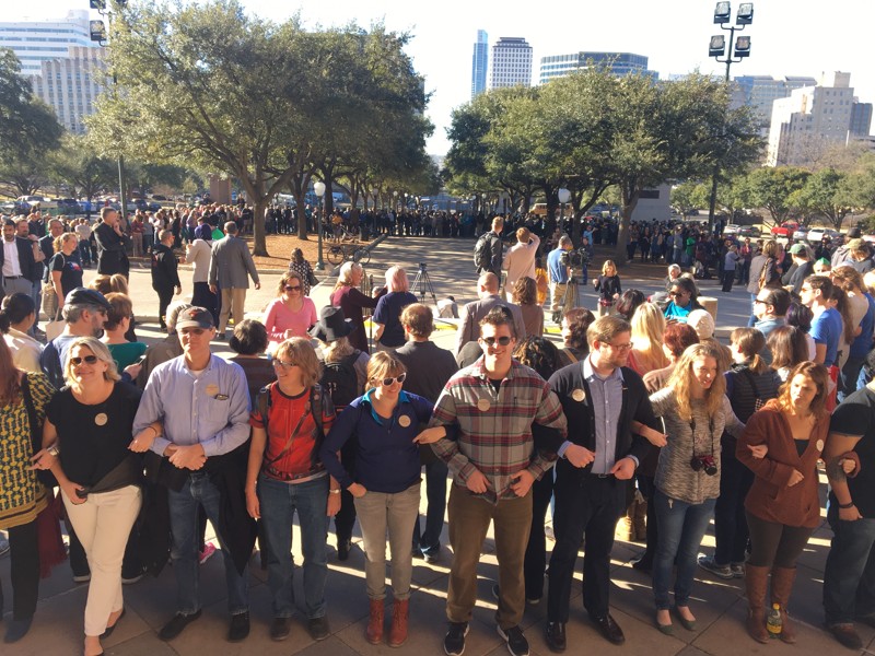 Вчера несколько тысяч человек взялись за руки, чтобы поддержать последователей ислама в «Мусульманский день на Капитолии», - традиционно проводящийся в Техасе и других штатах.