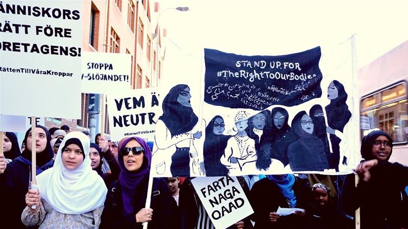 Протестующие в Стокгольме, а также в городах Мальме, Гетенбург, Вастерас, Сала и Умеа скандировали лозунги против расизма и в поддержку хиджаба на рабочих местах и держали в руках плакаты, сообщает Al Jazeera.
