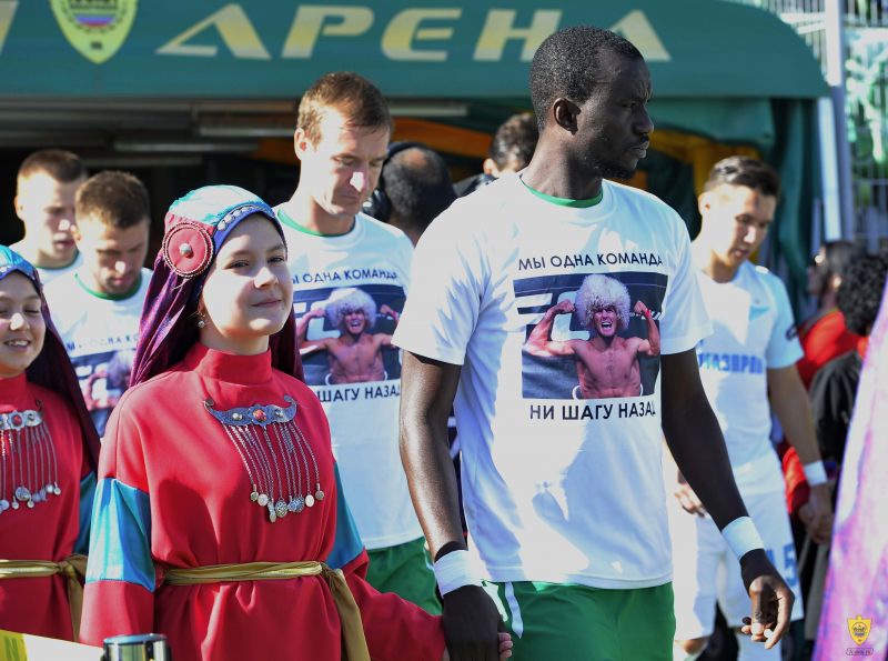 «Эти футболки приготовлены в поддержку Хабиба Нурмагомедова. Весь Дагестан будет болеть за него, и я думаю, что он сделает все, чтобы выиграть, и приедет в республику с поясом», – цитирует полузащитника клуба Данила Глебова «Чемпионат».