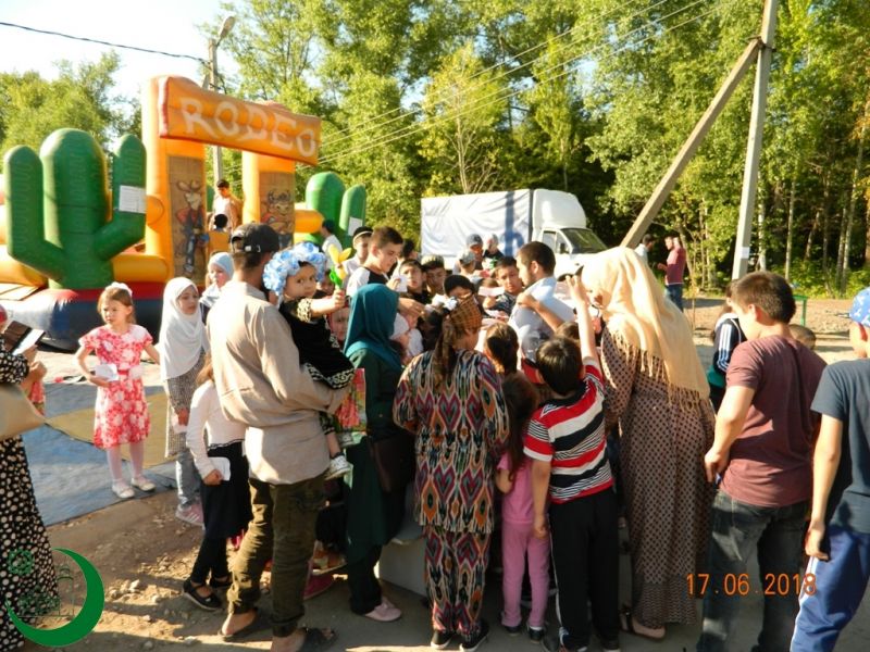 На праздник пришли более 110 мальчиков и девочек. Они развлекались на батутах, мерились силой, бегали наперегонки, отвечали на вопросы по основам Ислама. Малыши собирали кубики, а девочки вырезали поделки из цветной бумаги.