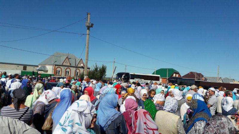 После полуденной молитвы прилегающая территория заполнена: сотни людей собрались, чтобы торжественно проводить своих земляков. 145 человек под руководством опытных сопровождающих будут совершать обряды поклонения, преодолев тысячи километров пути, жару и трудности путешествия. Однако пилигримов это не пугает: они все в один голос говорят, что с такими проводниками, как Рифат-хазрат Абузяров и Фаниль-хазрат Дашкин они чувствуют себя спокойно.
