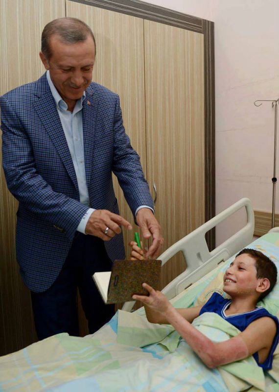 Новоизбранный президент Турции Реджеп Тайип Эрдоган в воскресенье навестил в больнице Анкары раненых жителей Газы, которые были доставлены в Турцию на лечение, сообщает Trend со ссылкой на агентство "Анадолу".